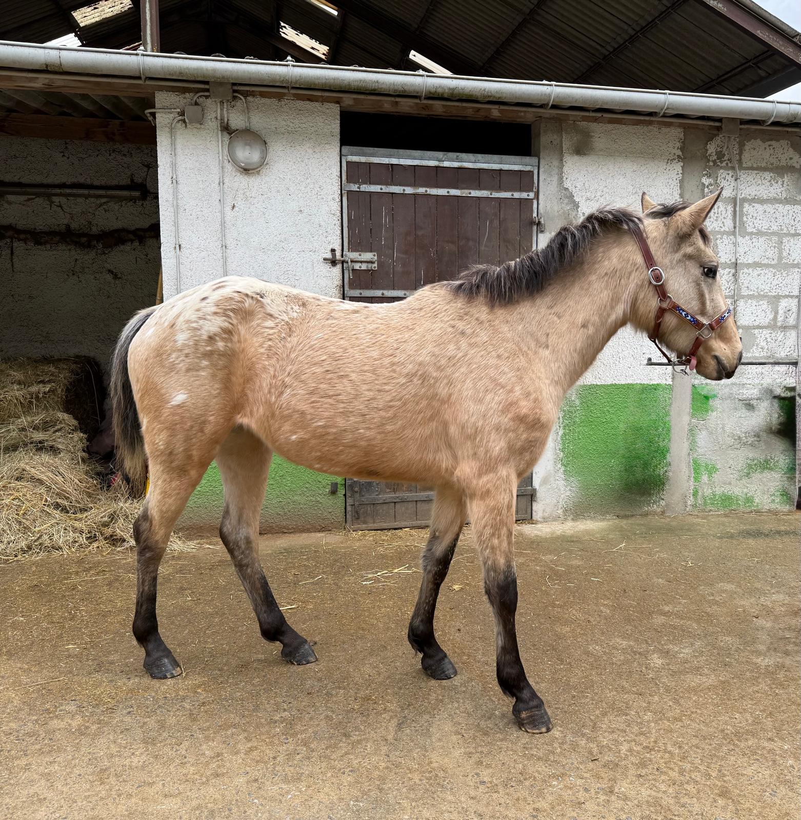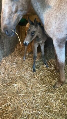 Très jolie et gentille ponette née en 2023. Elle sera grande D. Sa robe originale elle la tient de sa maman une adorable ponette ONC gagnante en épreuve C 1. C’est la propre soeur de Pastel du Palmier. Son papa n’est plus à présenter: Pégase de Kerduff poney D gagnant GP Amateur 120.