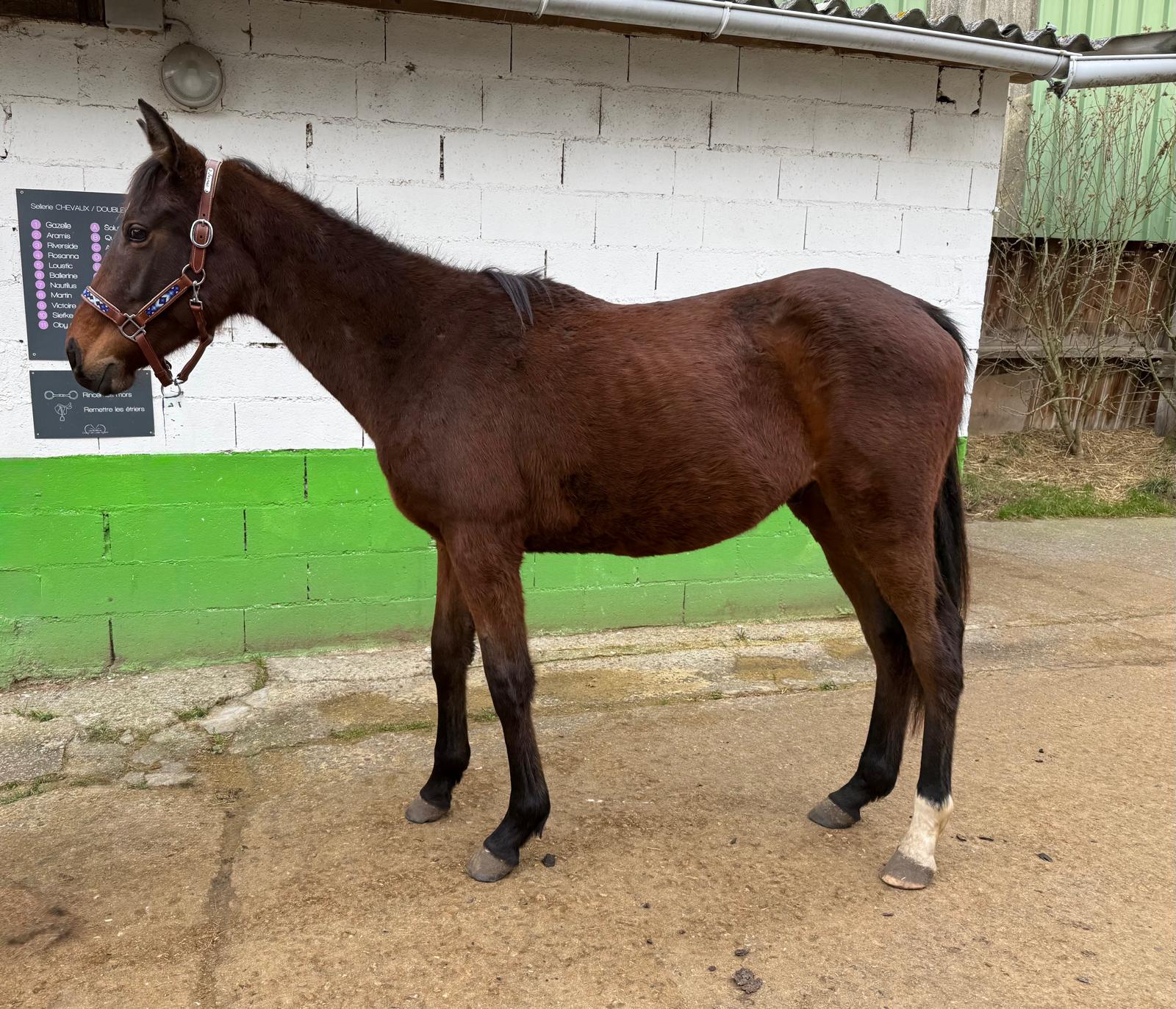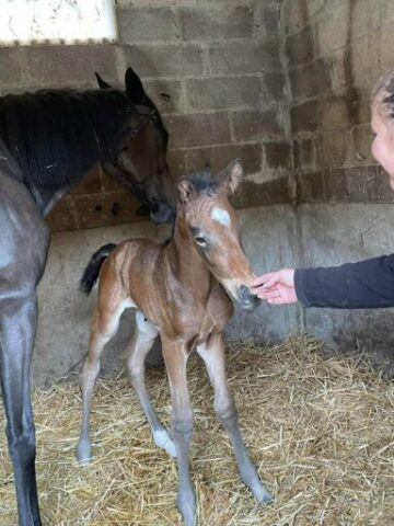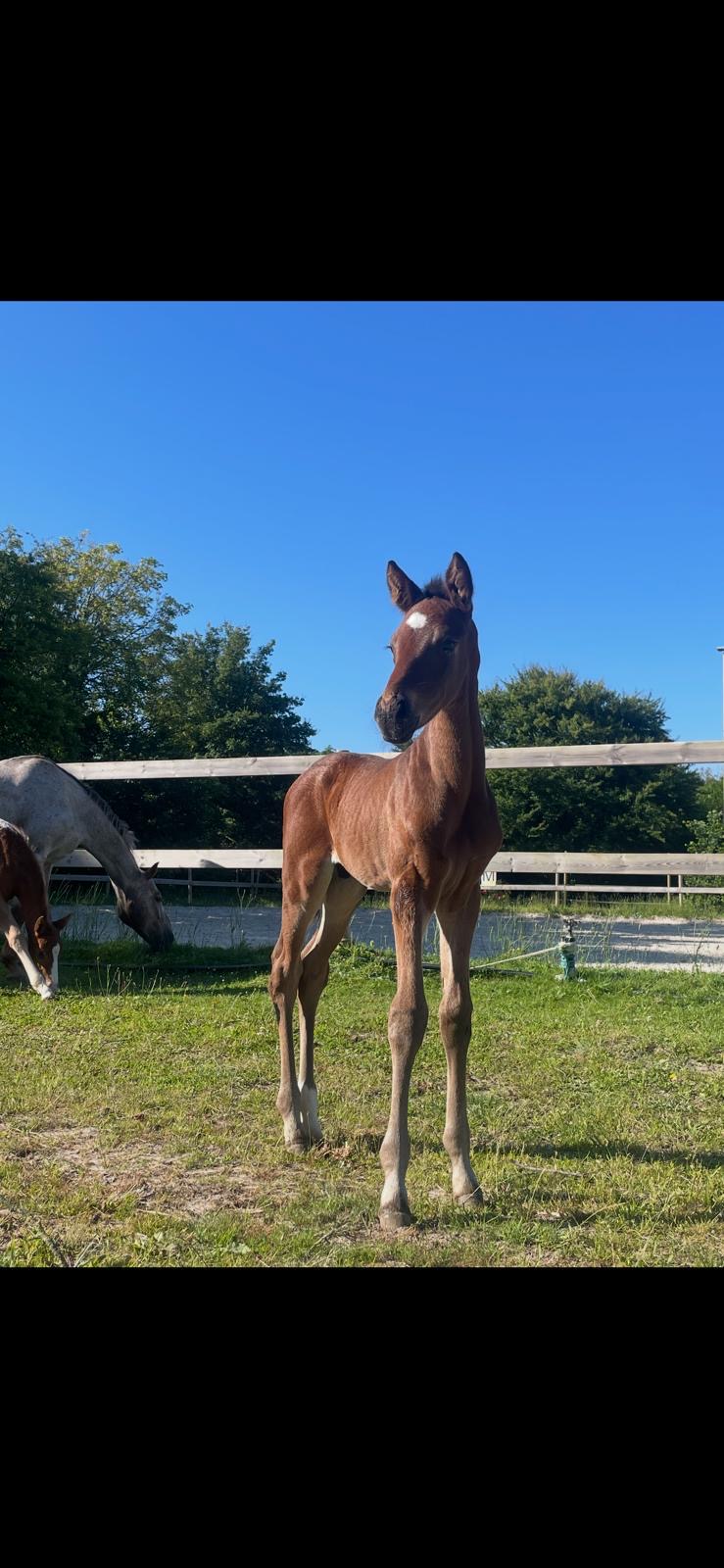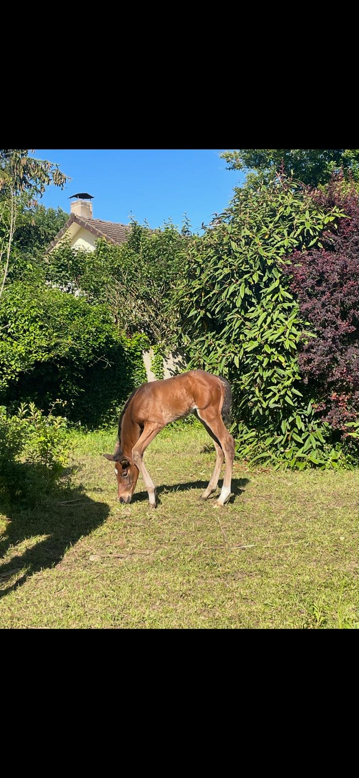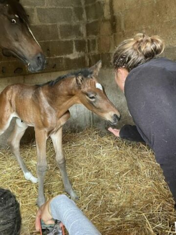 Joli et très gentil poulain bai brun né en 2024. Sa mère Belle Attitude est gagnante en course de plat. Son père HOPTUM DE L’ABBAYE (gagnant en CSI 4* et GP 145) par MALITO DE REVE (lui-même frère et père de plusieurs gagnants en GP CSI5* 1,60m) .