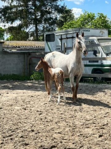 Magnifique pouliche à la robe originale née en 2024. Son père Mozart de Beny n’est autre que le père de CLEMENTINE ponette gagnante en CSIO Coupe des nations, régulièrement gagnante en CSI 1*, GP 135 et AS Poney Elite GP Excellence. Sa mère Tulipe est une ponette gagnante en Club 1.